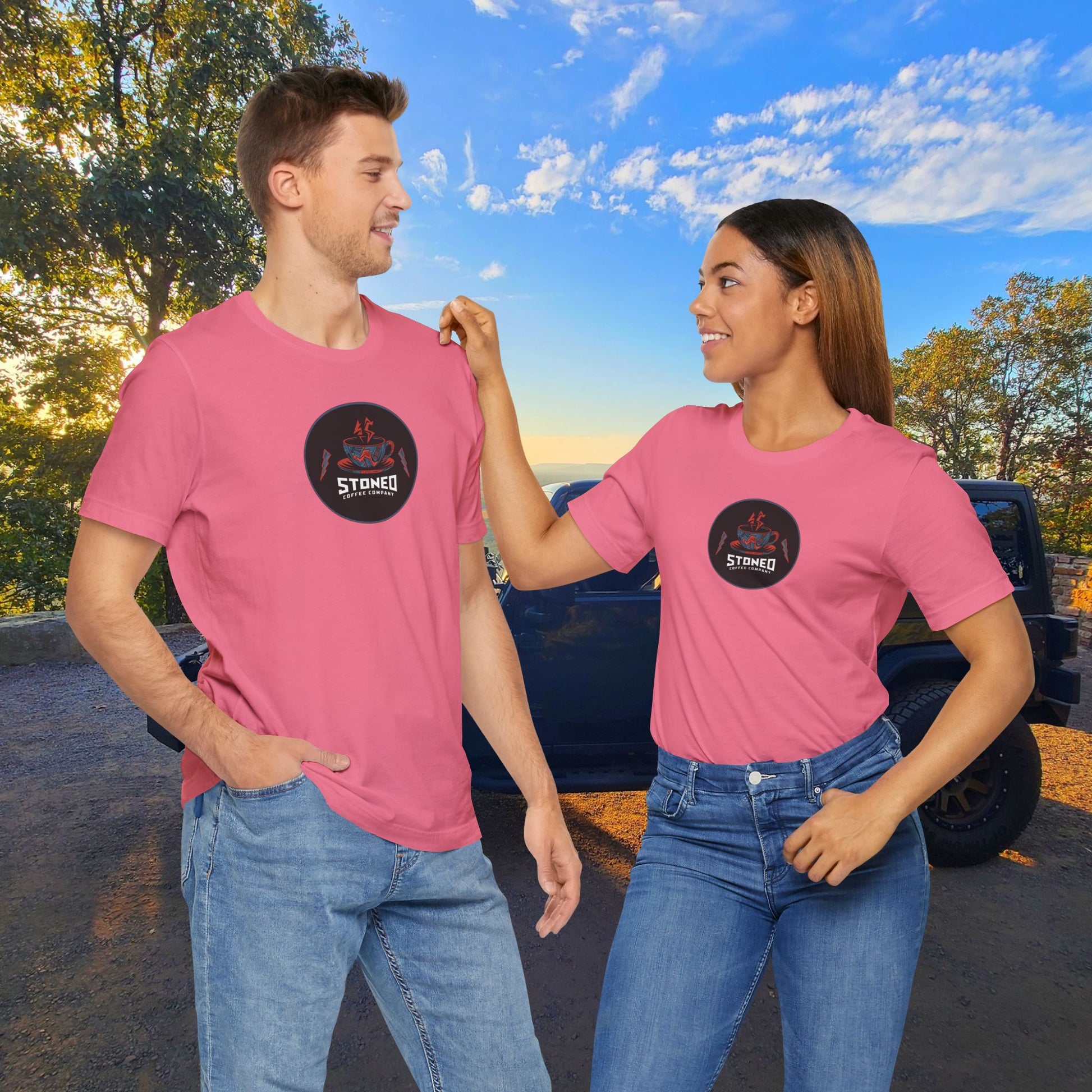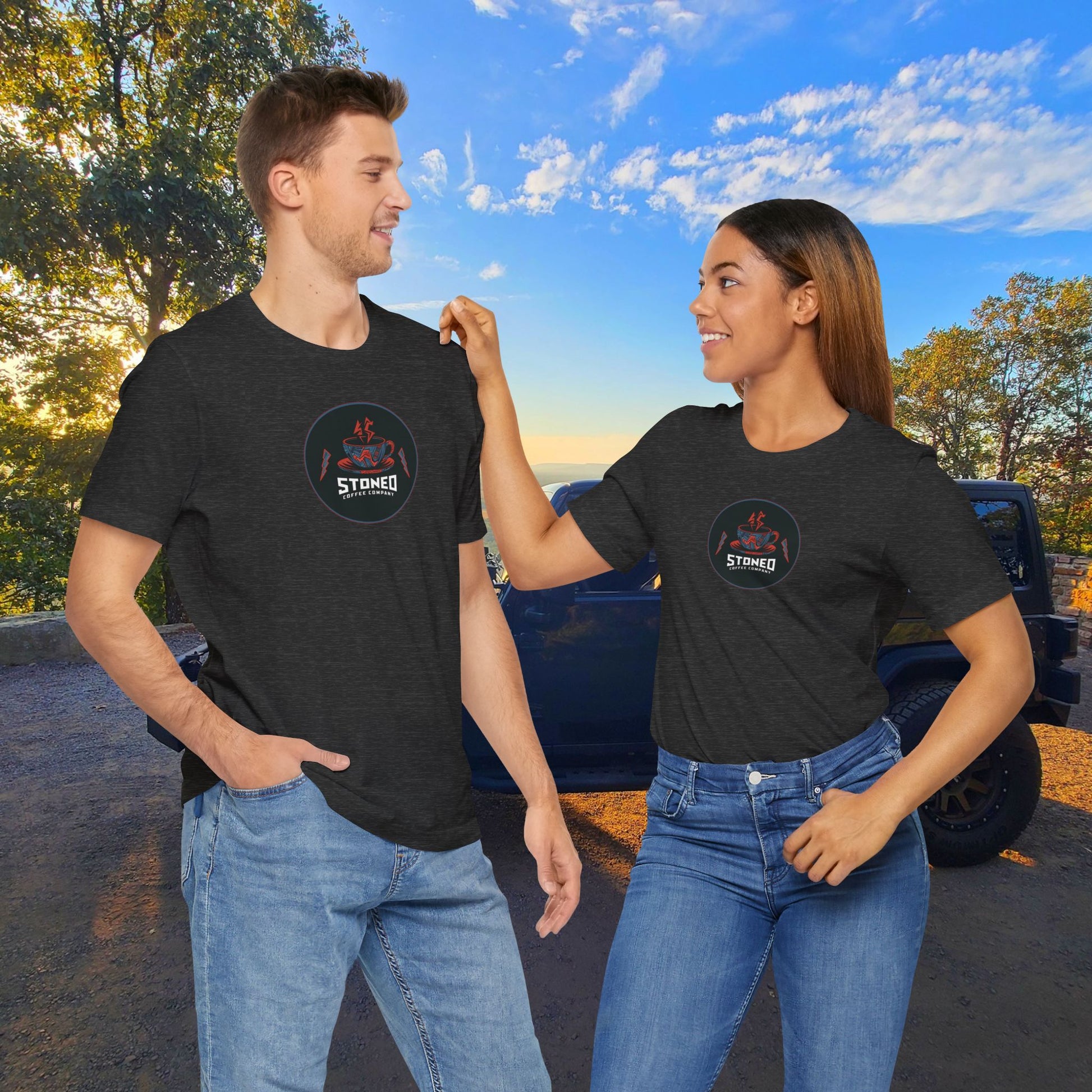 A trendy and casual T-Shirt featuring the Stoned Coffee Company Heavy metal Logo design. Perfect for fans of heavy metal music and coffee lovers looking to add a bit of edgy style to their wardrobe. This T-Shirt is ideal for everyday wear, concerts, casual outings, and music festivals.